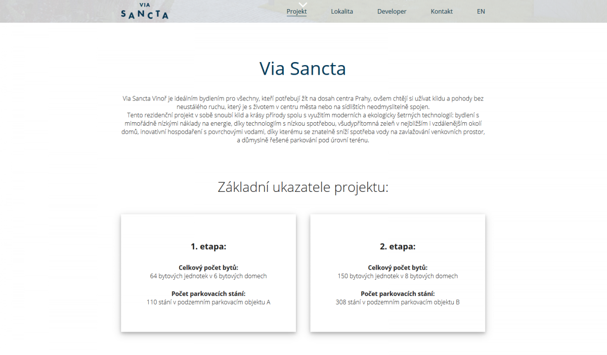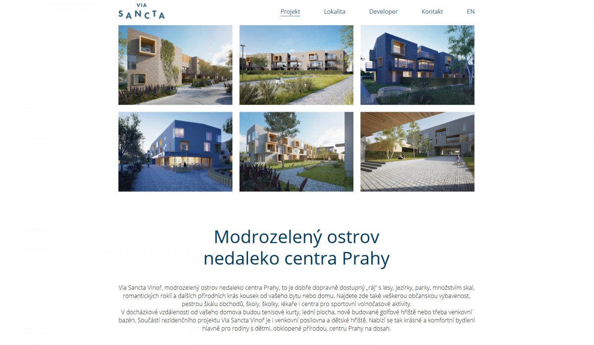 Via Sancta Vinoř je ideálním bydlením pro všechny, kteří potřebují žít na dosah centra Prahy, ovšem chtějí si užívat klidu a pohody bez neustálého ruchu, který je s životem v centru města nebo na sídlištích neodmyslitelně spojen. Tento rezidenční projekt v sobě snoubí klid a krásy přírody spolu s využitím moderních a ekologicky šetrných technologií: bydlení s mimořádně nízkými náklady na energie, díky technologiím s nízkou spotřebou, všudypřítomná zeleň v nejbližším i vzdálenějším okolí domů, inovativní hospodaření s povrchovými vodami, díky kterému se znatelně sníží spotřeba vody na zavlažování venkovních prostor, a důmyslně řešené parkování pod úrovní terénu.